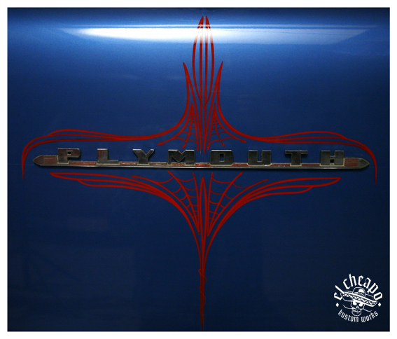 yesterday I went to drop of Tristans '51 plymouth suburban after doing some lettering and striping on it.